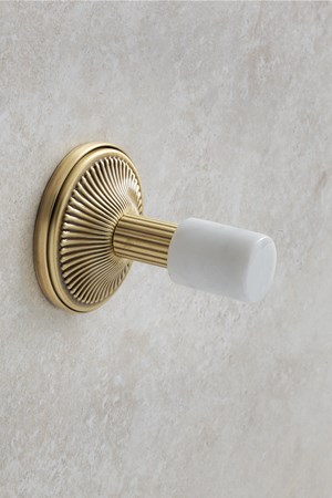 Struttura porta lavabo in ottone con mensola in vetro e piano in marmo